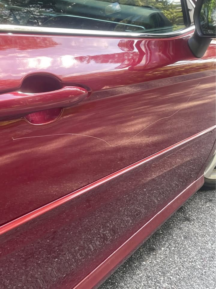 What’s wrong with it? Someone keyed the passenger front door and rear fender. Why? They were jealous of the color of this outrageously dependable car. But let’s face it, this is an egoless car.
